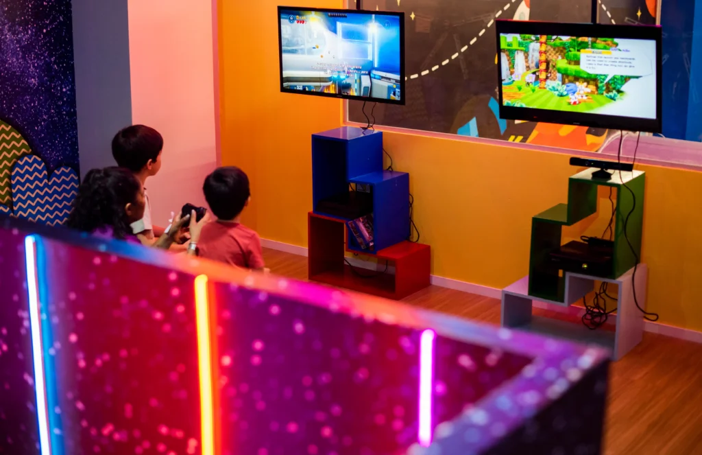 Aqui, os mais velhos também têm seu espaço garantido. Nossa área game conta com os jogos mais queridos, oferecendo experiências envolventes para os pré-adolescentes e adolescentes. Desde games de corrida até aventuras multiplayer, essa área é perfeita para quem gosta de tecnologia e adrenalina.